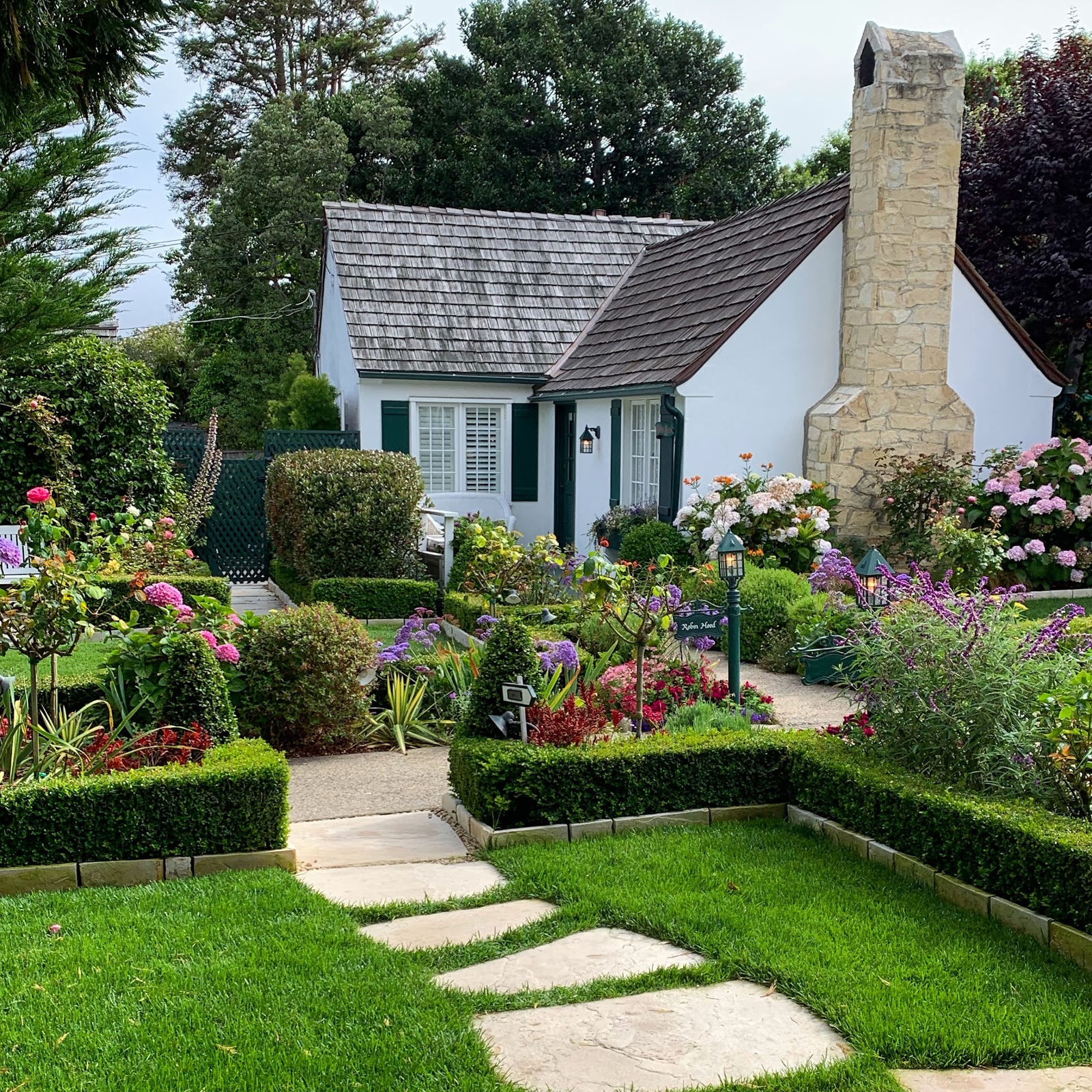 I use to work in Carmel back in the late 80's when my husband was doing his graduate degree at the Monterey Institute of International Studies (MIIS). Carmel was such a different place then. Filled with beautiful unique shops, including the gallery I worked in. Today it's a bit different, and I was saddened to see that the beautiful space that I worked in was now a darkly painted shoe store. The space before was the epitome of Carmel. It was filled with the cream of the crop American Handcrafts. Beautiful turned wood bowls, blown glass, gorgeous hand made furniture, pottery etc. filled the shop. We were not the only shop like this, and that is what made this storybook village so special. Granted, we didn't walk the streets of Carmel this visit, and only had dinner near my old work place, so maybe the criticism isn't fair, but from what we saw, there wasn't anything that special. The things that still remain from the past are, good food, the cute little thatched roofed tea house called The Tuck Box, and another shop that we use to love called Carmel Bay Company. Perhaps I'm seeing the past through rose colored glasses and I need to spend more time checking out the new shops. The only constant though.........Carmel is still drop dead gorgeous! The homes that were there in the 80's have stood the test of time and still look just as beautiful today. On this visit we stayed in a two bedroom cottage at Lincoln Green Inn. Click on the name and check out the site. They have four cottages that are decked out inside with all kinds of comfort. It's been a while since I stayed somewhere where the bed was equal to my own cloud bed. Four stars for this place!